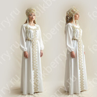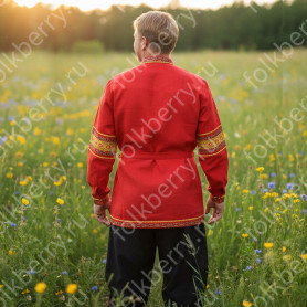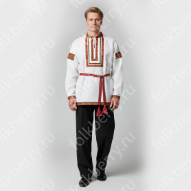 Фасон рубахи удобен и  не ограничивает движения. Жесткий воротник, пуговицы отсутствуют, рукав втачной, немного спущенный, свободный, длина рукава примерно до локтя. По бокам внизу разрезы. К рубахе прилагается пояс. Декор на груди выполнен из жаккардовой тесьмы в натуральном цвете. Для подбора правильного размера, в заказе, пожалуйста, пишите рост, обхват груди и талии.