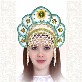 Кокошник Хозяюшка - лаконичный по форме, красивый по сочетанию цветов, изысканный по материалам, благородный по образу.