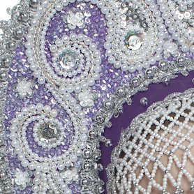 Сзади кокошник завязывается широкими лентами-крыльями из парчи. Высота кокошника - 14 см.