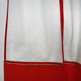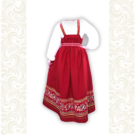 Платье Аленький цветочек удлиненное ( миди, до щиколотки) станет отличным вариантом сценического костюма! Сочетание белого и красного цвет, длинная юбка  придают платью торжественности. Свободный силуэт, рукав реглан, регулируемая горловина добавляют вещи комфортности.
