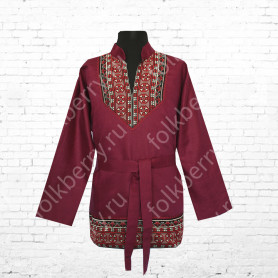 Платье «Солдатка» отрезное по талии, рукав реглан, юбка-почти солнце, длиной немного ниже колена. В комплект входит пояс. Важно, что декор платья выдержан в славянском стиле. Это платье - современное прочтение народных традиций. Женственное, удобное и нарядное, оно дарит ощущение радости и праздника. По стилю замечательно подходит для тематических праздников в детских  учебных заведениях, по фасону и яркости цветов отлично подойдет для танцевальных коллективов.  как правило, дети не стесняются надевать его ( в отличии от длинного русского сарафана ) Платье выполнено из немнущейся, матовой ткани "габардин" символичных для славян цветов ( красного, синего, зеленого, бордового).