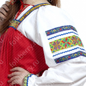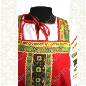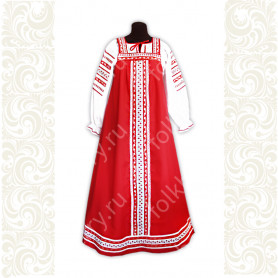 Декор платья - жаккардовая тесьма со славянскими символами. Талия немного завышена, пояс в комплекте.