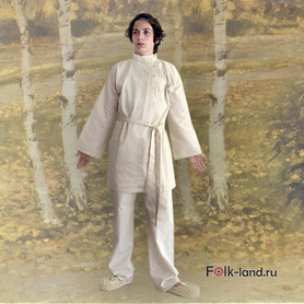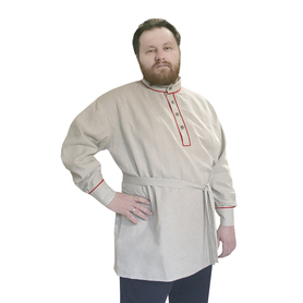 Данная модель привлекает внимание сочным бордовым цветом и благородным, тканным орнаментом на груди. Рубаха «Молодецкая» выполнена из натурального, плотного, умягченного льна. Хороший, оригинальный подарок важному для Вас человеку. В комплекте имеется пояс. По индивидуальному заказу можно подобрать порты.
